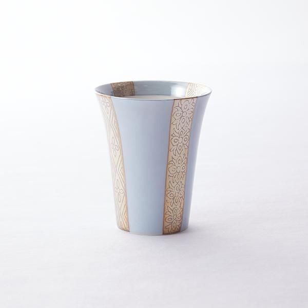 麦酒杯 青釉 銀彩縞